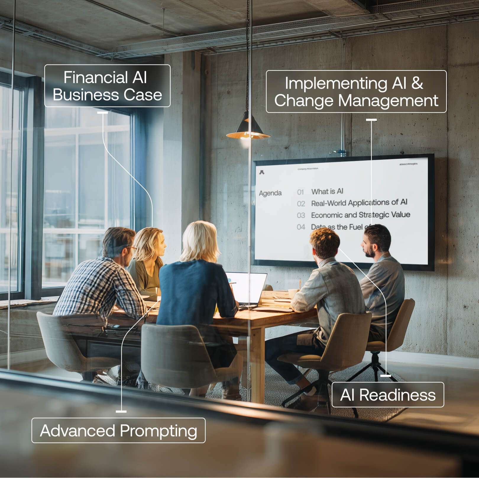 The promise of AI is lost without a leadership team that understands its strategic implications. Our Strategic AI Education is designed for the leaders of physical goods companies, not data scientists. We empower your executive team to move beyond the buzzwords, identify where AI creates genuine competitive power in your value chain, and build the vision for its impactful, long-term deployment.