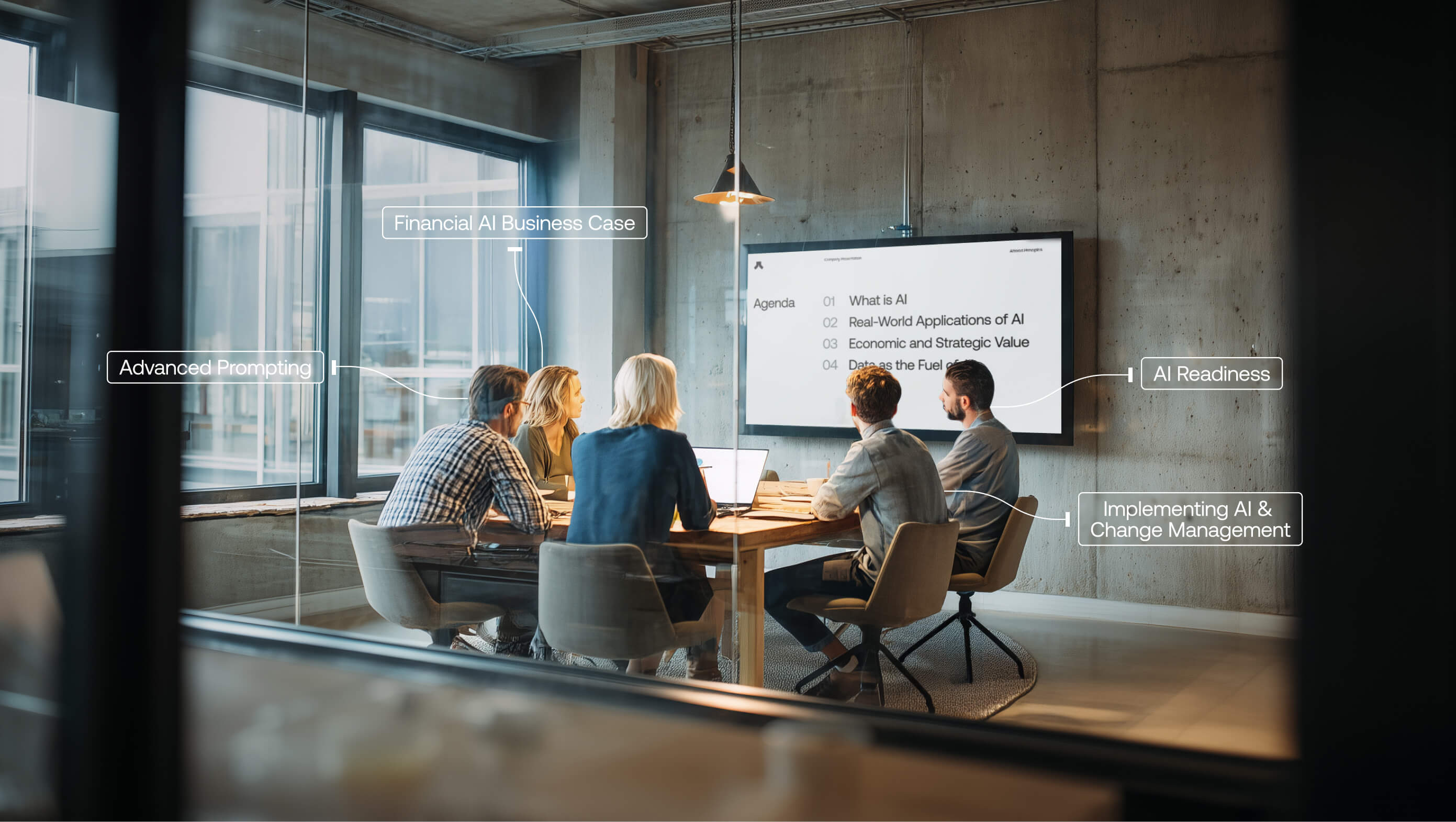 Our program is a progressive journey designed to maximize financial returns, manage risk, and drive the cultural transformation needed to embed Al into your organization’s DNA.